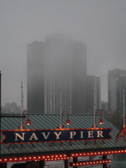 Past the end of the waiting floats, we only had about another half mile to get to the aquarium. As we started getting closer, we could see what looked distressingly like a line leading up to the front doors. When we got there, we found that people were lined up for 200+ yards waiting to get in! The line did not appear to be moving all that fast, and we had been standing outside for about as long as we could handle at that point. We had a plan ‘B’ย that was to head to the planetarium just a little farther down the waterfront from the aquarium. That walk was unspeakably cold! The path over there was exposed, and there was some powerful wind coming off the lake. Once we got to the planetarium, they had signs announcing that their system for doing the “feature” shows was broken, but at that point it didn’t much matter as we just wanted to be inside, anywhere! We bought entrance passes and tickets to a more basic planetarium show, then headed to their cafeteria. I would go back to the planetarium just to eat at their cafeteria on a clear day! The location kind of sticks out into the water, and we in a big glassed in area facing back towards the city, looking over the lake. It was a nice view, even on a cold rainy gray day.