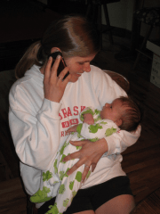 Meet aunt Heather! She is giving detailed descriptions of our new nephew to his dad in the picture, so the phone isn’t her somehow being less than attentive 🙂