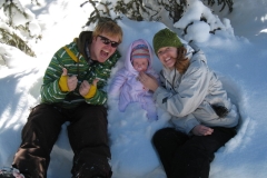 What you can’t quite see in the snow around their feet, are the snowshoes they are wearing. There was well over five feet of snow on the ground where that picture was taken, and without the snow shoes it would have been an entirely different picture. As you may recall Heather and I had the chance to play with some snow shoes back in Iowa a few months ago, but there were only an inch of snow. The experience is entirely different with meaningful amounts of snow.
