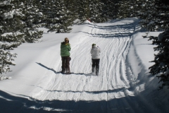 Our plan was to hike straight out into the fresh snow, eventually crossing the trail to a lookout, allowing us to really experience the serenity of the fresh snow in the woods. It was beautiful, it was peaceful, it was also a LOT of work. Even with the snow shoes, the lead person in our group had a big job breaking a trail for us. We rotated the job around quite a bit, and were making pretty good time. Ingrid however, thought it was time for a break.