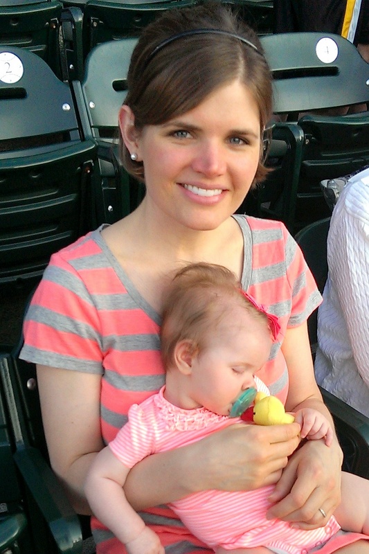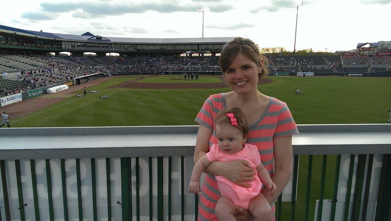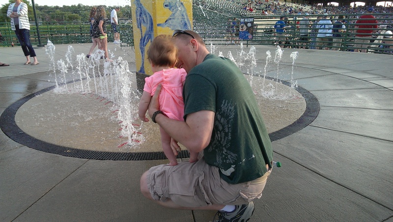 She was wonderfully cooperative basically the entire game. The vendor shouting “POPCORN! PEANUTS!” as he walked right next to us was a little much, giving her a chance to exercise her lower lip and there may have been some crying at that point too.