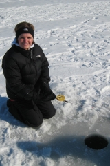 It didn’t take long to determine that ice fishing wasn’t going to be our thing. I should mention, as you can kind of see from the picture, we had a beautiful sunny day. It was still quite cold, but being outside in the sunlight was a wonderfully refreshing change from our normal lifestyle.
