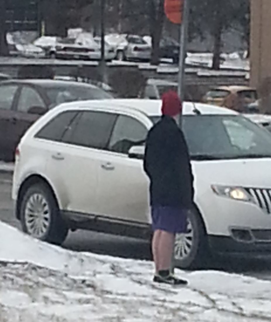 Mind you it was a balmy 5 degrees out by this time. I don’t know if this was an attempt to feel warm by dressing for summer or what.