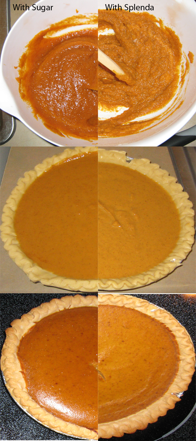 The only problem was it called for a cup of sugar, shattering our hopes of a low-sugar pie. Our solution was to make two pies, one by the recipe, and one using splenda.
